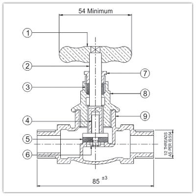 Screwed female ends to BSP Threads to IS:554. Screwed in bonnet,